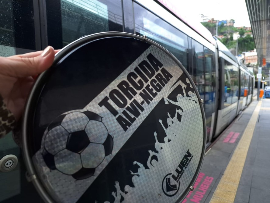 Um pandeiro alvinegro,novo e pronto para continuar a embalar a torcida que deu trabalho no Brasileirão e na Libertadores de 2024,foi esquecido por algum botafoguense cansado de tanto festejar durante uma viagem na linha 1 do VLT Carioca nos últimos dias.