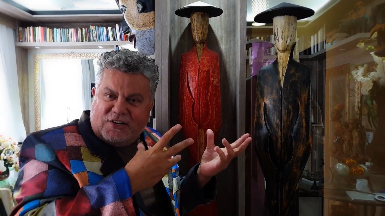 Milton Cunha mostra esculturas que trouxe de uma viagem para Macau — Foto: Reprodução