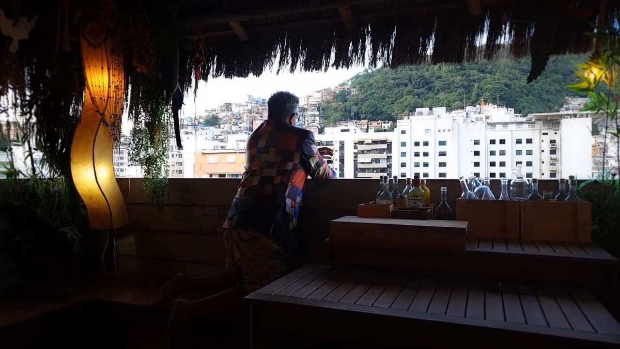 Milton Cunha na varanda de sua casa,que tem vista para a Ladeira dos Tabajaras e o bairro Peixoto — Foto: Reprodução