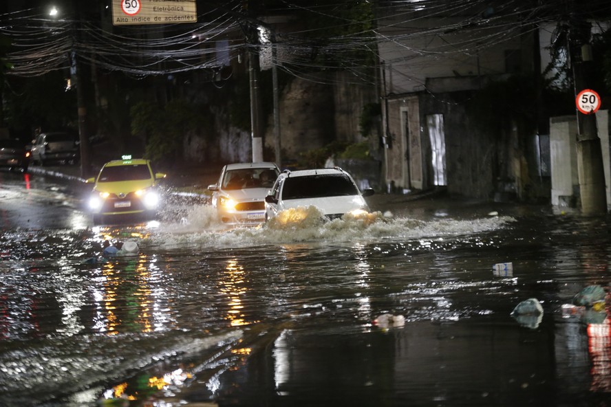 Alagamento na Rua Clarimundo de Mello,Piedade — Foto: Agência O Globo / Domingos Peixoto