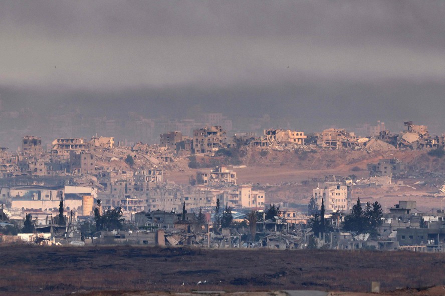 Imagem da Faixa de Gaza a partir do território israelense — Foto: Jack GUEZ / AFP