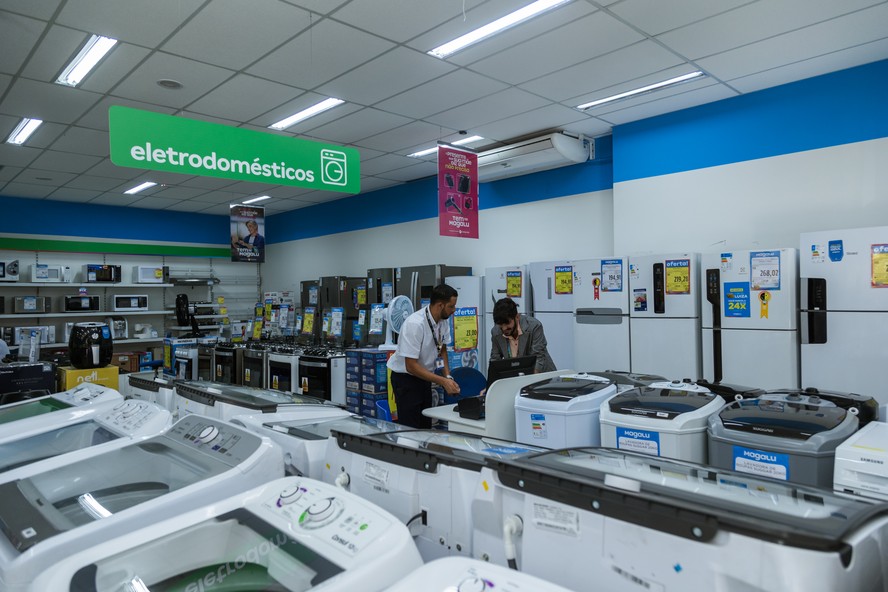 Trabalhadores em loja de eletrodomésticos em São Paulo — Foto: Tuane Fernandes/Bloomberg