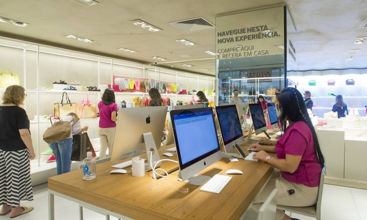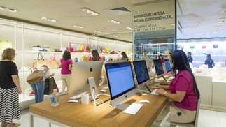 Não é só o olho no olho. Vendedores na Arezzo usam um aplicativo que permite atendimento personalizado para facilitar vendas — Foto: Edilson Dantas/Agência O Globo