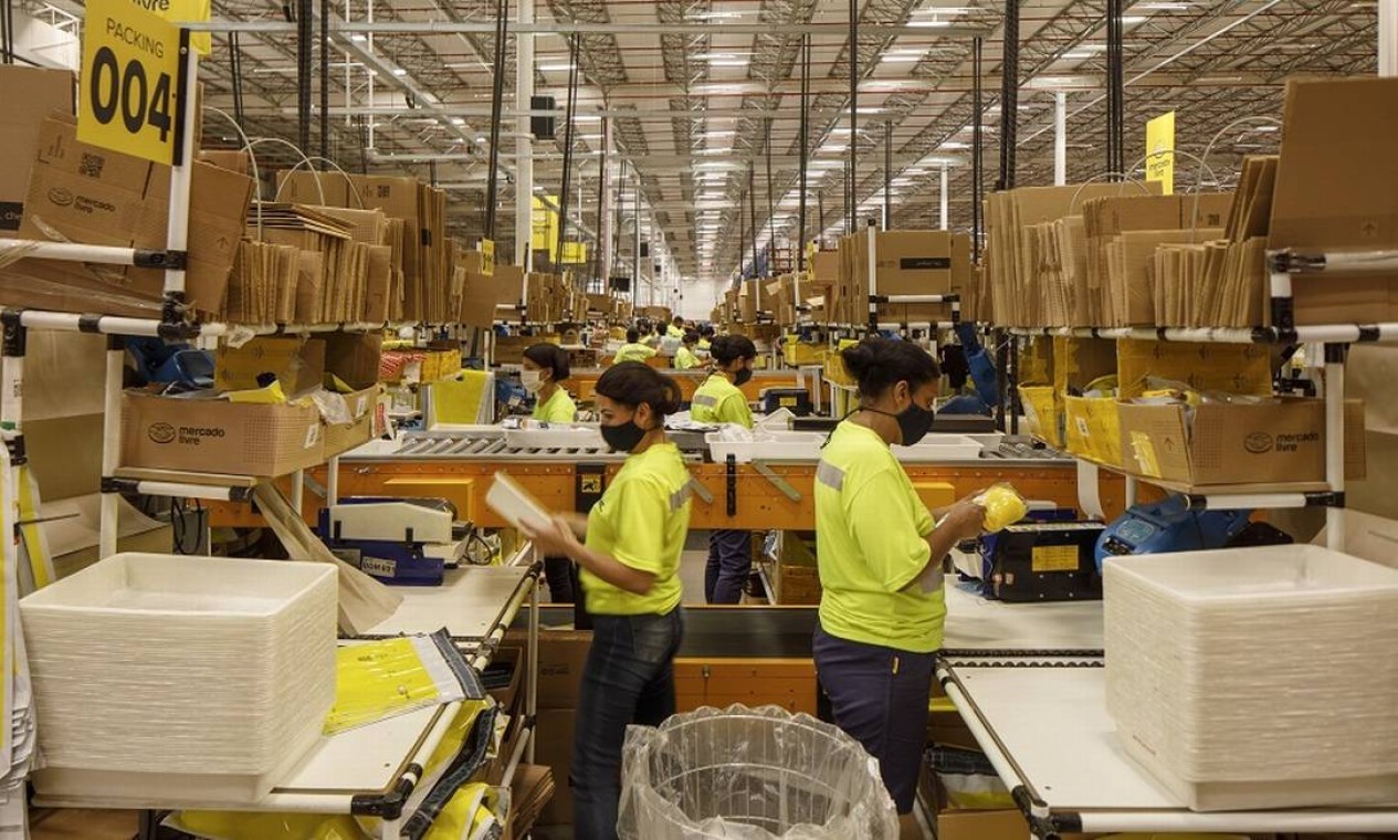 Centro de distribuição do Mercado Livre,em São Paulo; aumento nas vendas pela internet — Foto: Caio Guatelli / Agência O Globo