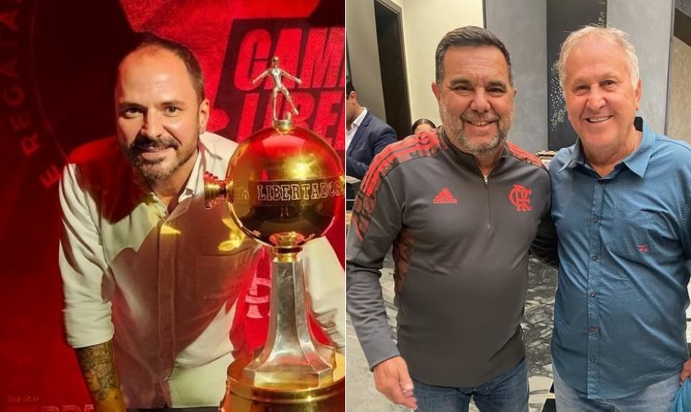 Paulo César Pereira e Marcelo Conti (ao lado de Zico): apoiadores de Bap nomeados para cargos remunerados no Flamengo — Foto: Reprodução / redes sociais