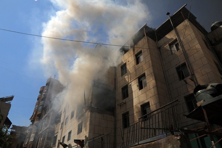 Fumaça se eleva de um edifício que foi alvo de um ataque israelense no bairro de Basta,em Beirute,em 8 de abril de 2026 — Foto: AFP