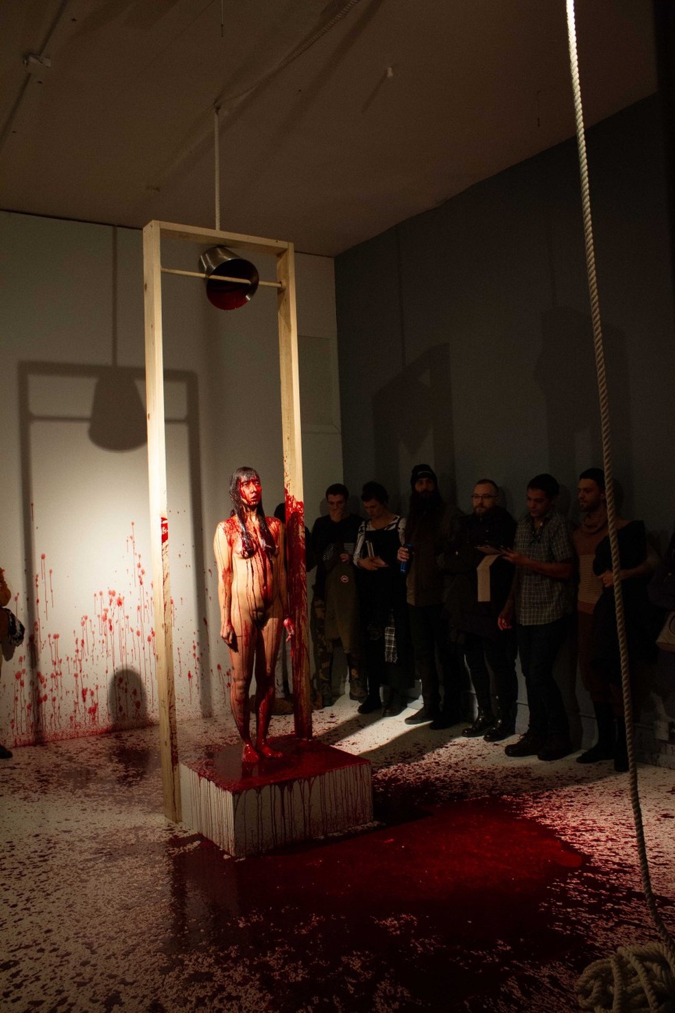 A performance “La sangre del cerdo II” foi apresentada em 2017,nos EUA — Foto: Matt Fibre