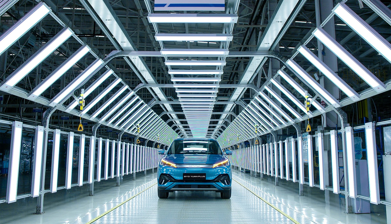 Linha de produção da montadora chinesa BYD,no distrito nacional de Alta Tecnologia. Foto: Divulgação/BYD