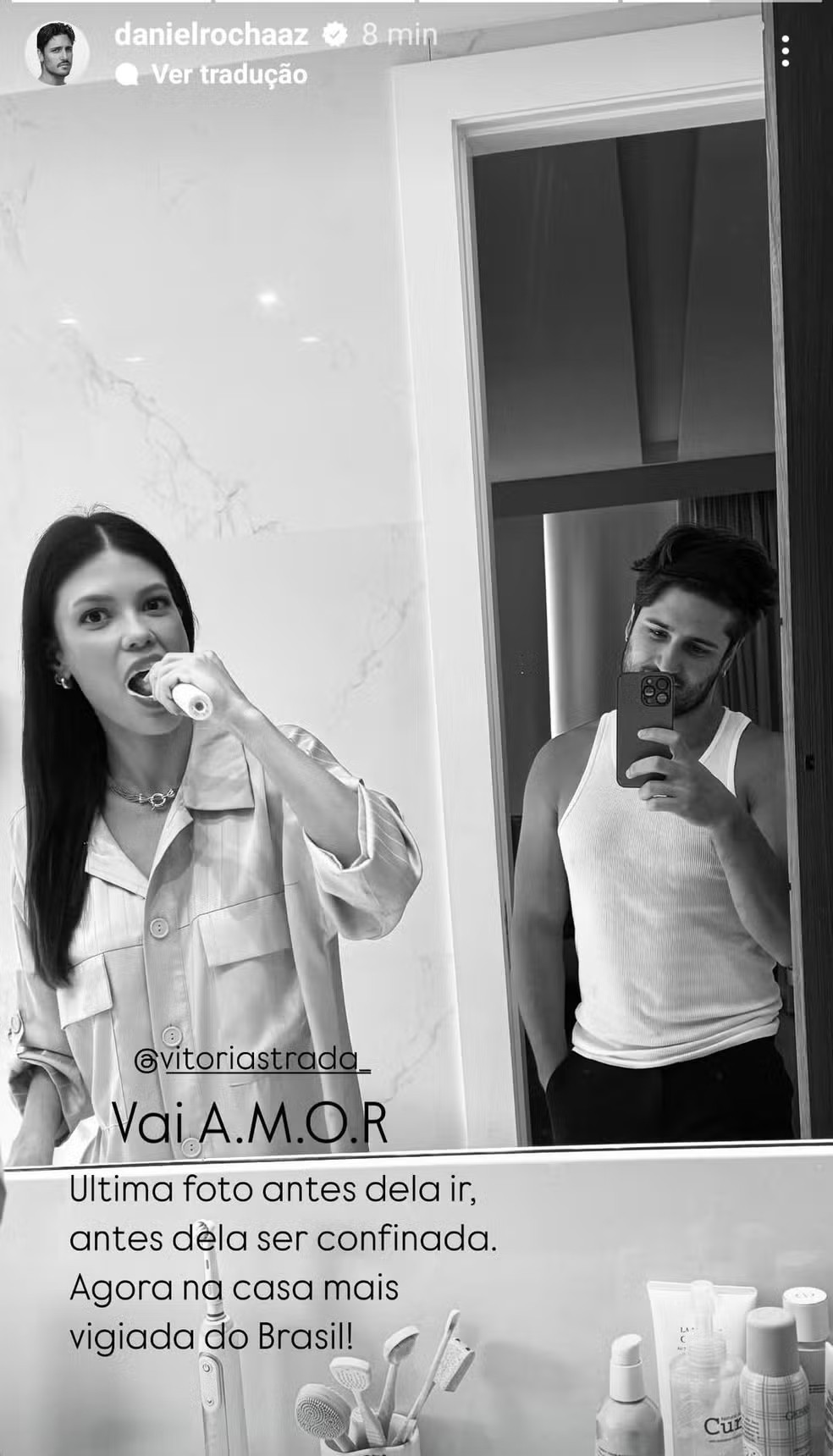 Na hora da estreia do BBB 25,Daniel Rocha usou os Stories do Instagram para desejar boa sorte à namorada,a atriz Vitória Strada,que está confinada com o amigo Mateus Pires.