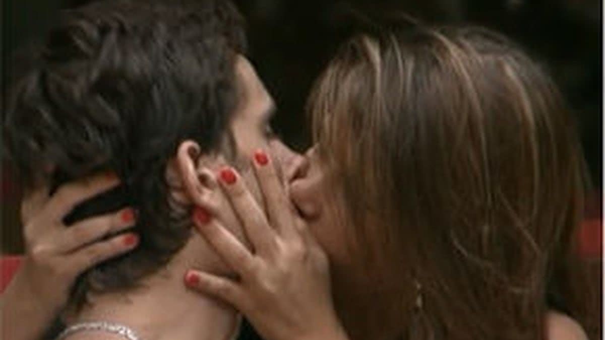 No 'BBB 5',Grazi Massafera costumava colocar a mão na frente para esconder seus beijos com Alan Passos — Foto: Reprodução/TV Globo