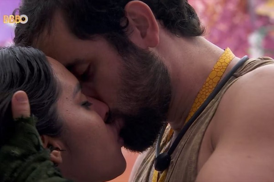 O primeiro beijo de Jade Picon e Paulo André foi um dos mais aguardados pelo público do 'BBB 22' — Foto: Reprodução/TV Globo